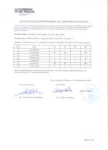 Se publica el acta de evaluación provisional de las pruebas celebradas el pasado 28 de noviembre. Se recuerda que la publicación del acta definitiva y la puesta a disposición de los certificados de superación de competencias tendrá lugar el próximo día 19 de diciembre.