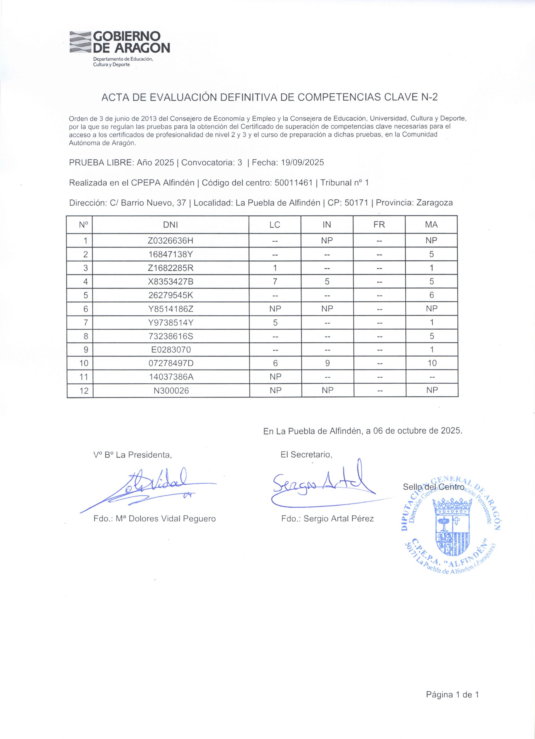 Ya pueden retirarse los correspondientes certificados de superación de competencias en la Secretaría del centro. La recogida deberá hacerla la persona interesada mostrando el mismo documento identificativo con el que se presentó a la prueba. Se podrá dar permiso por escrito a otra persona para que recoja los certificados, adjuntando fotocopia del DNI y autorización por escrito.