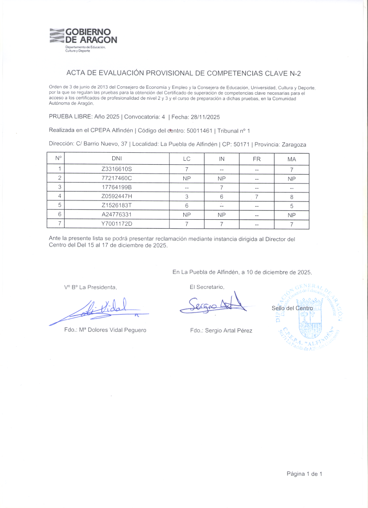 Se recuerda que la publicación del acta definitiva y la puesta a disposición de los certificados de superación de competencias tendrá lugar el próximo día 19 de diciembre.