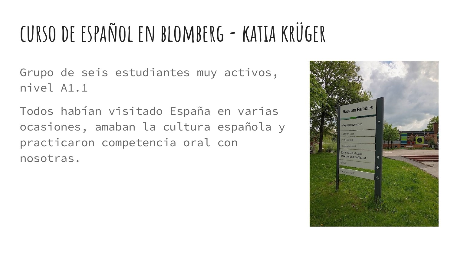 Dentro de los objetivos del proyecto se incluye el de visitar y conocer centros educativos de EPA que compartan características con el nuestro. Tras una intensa búsqueda de socios, recibimos la respuesta afirmativa por parte de la directora de la VHS Lippe-Ost, en Schieder, Alemania. El centro acogió entre los días 5 y 9 de mayo de 2025 a dos de nuestras docentes y organizó un programa completo para ellas en el que se incluyeron observación de clases de alemán como lengua nueva, inglés, español, cursos promoción y extensión educativa, así como una explicación pormenorizada del funcionamiento de la red de centros de educación de personas adultas en Alemania.