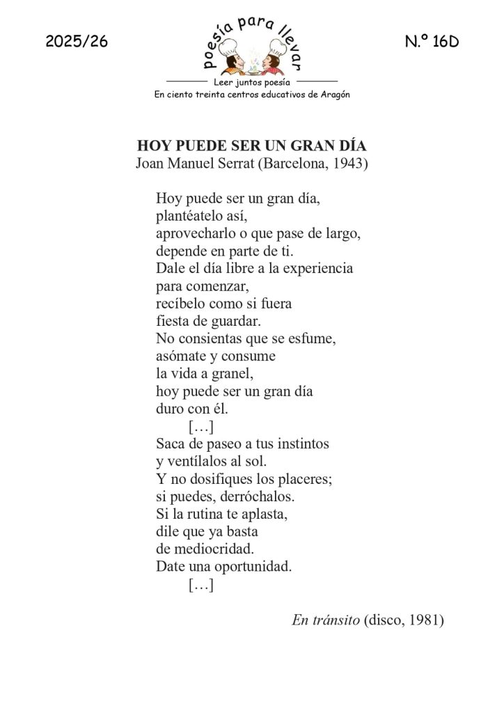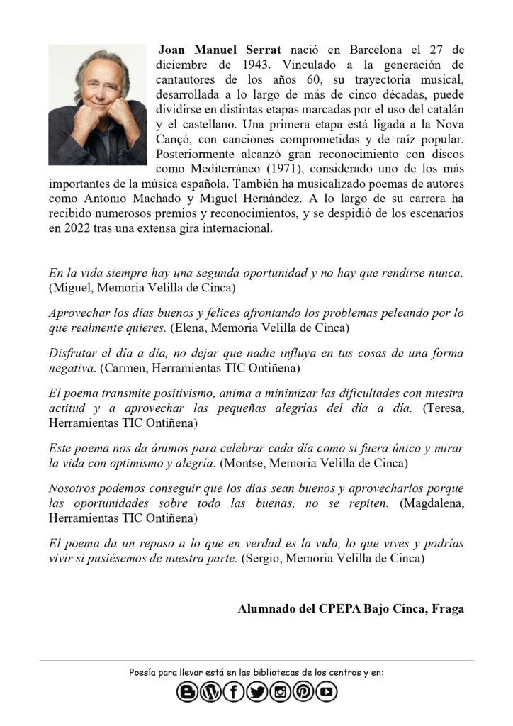 Esta semana, un poema de Joan Manuel Serrat.